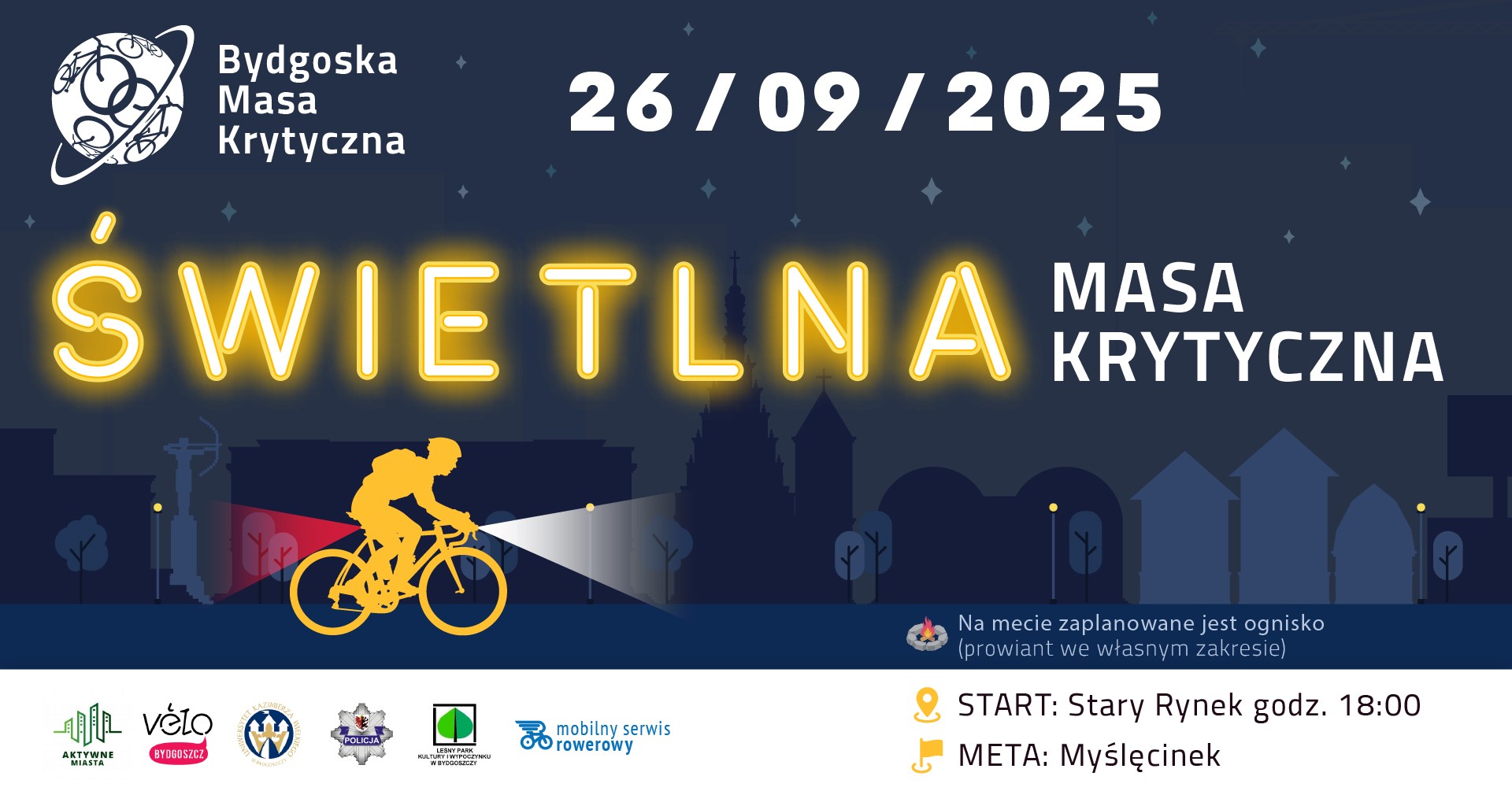 Bydgoska Masa Krytyczna od lat promuje bezpieczną jazdę na rowerze. W piątek, 26 września, chcemy głośno i wyraźnie przypomnieć, jak ważne jest oświetlenie.